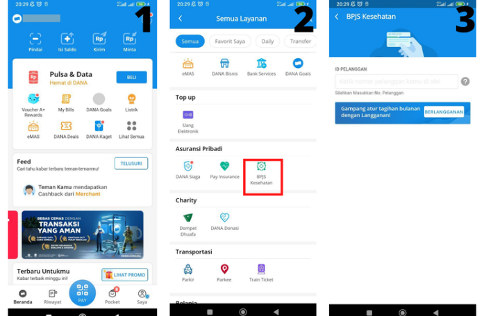 Sebelum melakukan pembayaran, pastikan Anda sudah mengunduh dan mendaftar di aplikasi Dana. Setelah itu, ikuti langkah-langkah berikut untuk menyelesaikan pembayaran BPJS Anda: